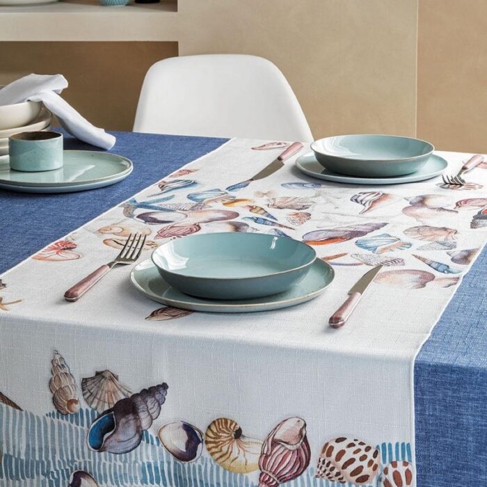 Runner antimacchia e idrorepellente 100% made in Italy perfetto da abbinare alle tovaglie tinta unita dello stesso filato.